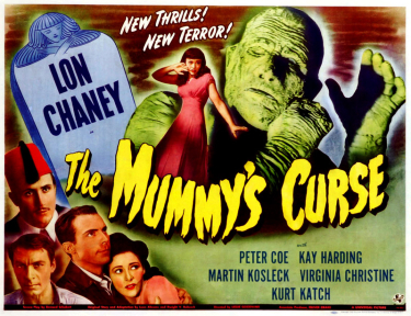 Kharis, the mummy, is back in The Mummy’s Curse and he’s...he’s still played by Lon Chaney, Jr., and he gets up to his old tricks in the last of Universal’s classic mummy monster movies. At the end of The Mummy’s Ghost, we last saw Kharis carrying Amina into the swamp as he was being pursued …